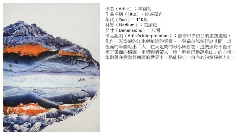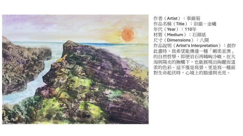 退休後一年多,她確診癌症,治療過程相當艱辛。只要身體狀況允許,她便拿起畫筆,沉浸於創作之中。畫畫時的專注與成就感,讓她暫時忘卻病痛,為生命注入力量。即使後來病情復發,她依然沒有放棄創作,持續用畫筆描繪希望與生命的韌性。