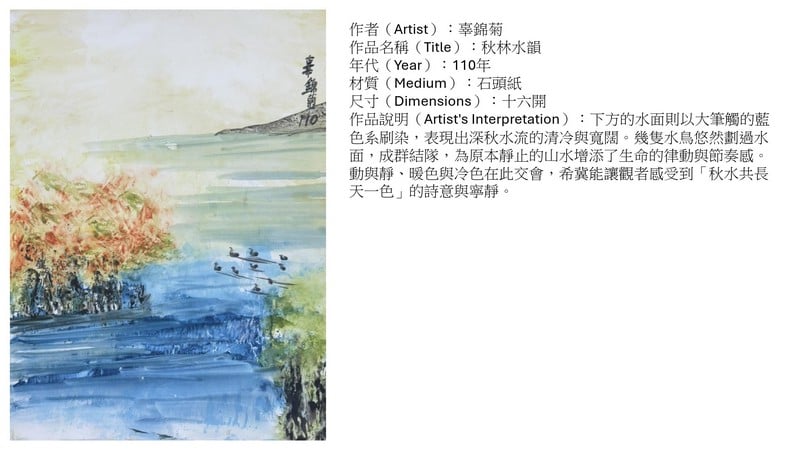 面對疾病所帶來的不確定性,她更加篤定要將自己的畫作回饋社會。將一生所累積的愛心與力量,透過藝術轉化為公益,才是她最想留下的價值。這不僅是以畫傳情,更是一位女性一生付出、韌性與信念的具體展現。