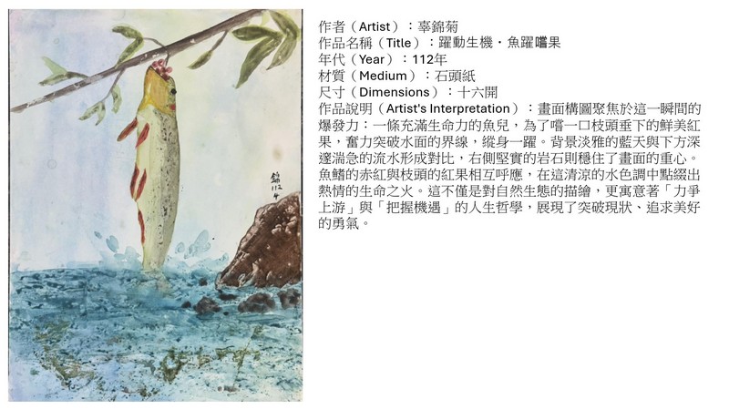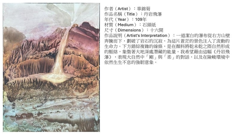 退休後一年多,她確診癌症,治療過程相當艱辛。只要身體狀況允許,她便拿起畫筆,沉浸於創作之中。畫畫時的專注與成就感,讓她暫時忘卻病痛,為生命注入力量。即使後來病情復發,她依然沒有放棄創作,持續用畫筆描繪希望與生命的韌性。
